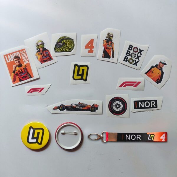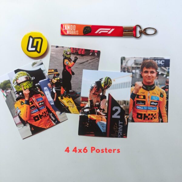 Our Lando Norris Gift Box Merchandise for F1 Fans Merchandise Gift box is perfect gifting item to Football Fans on their birthdays, and on other occasions. This gift box includes – 1 5×7 Inches Frame,1 Keychain, 1 Badge of diameter 58 mm, 4x Posters 4×6 inches, 14 Multi sized Stickers. This 5 in one combo comes in a Box.