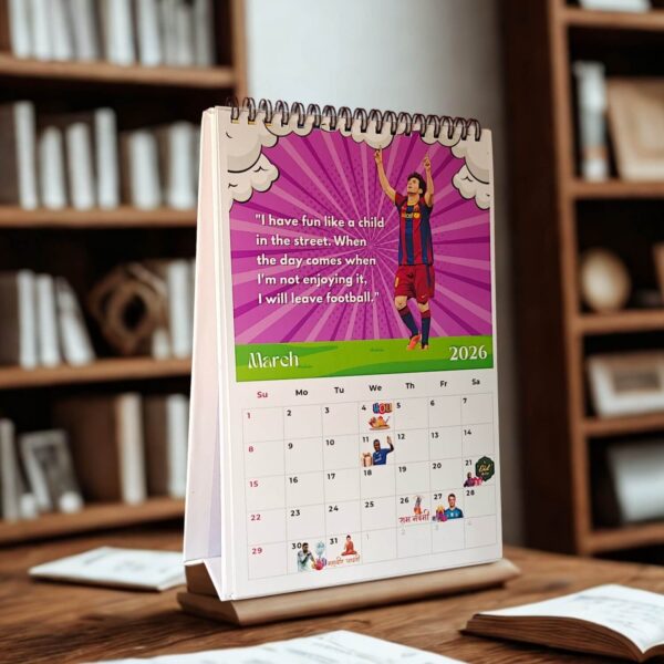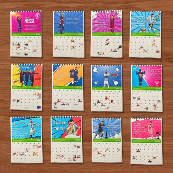 Bring your love for football to your workspace or study! This vibrant 2026 Lionel Messi Calendar features dynamic, artistic illustrations of the world’s top footballers, making it an inspiring addition to any desk or bookshelf.